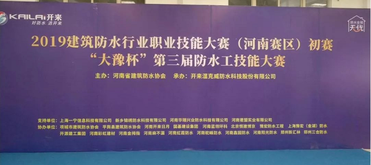 6月18日, 由河南省建筑防水協會與開來濕克威防水科技股份有限公司聯合舉辦的河南省“大豫杯”第三屆防水工技能大賽”在開來濕克威華中生產研發中心順利舉行,來自河南各地的20余家防水企業近100人參與此次大賽,作為主辦方的開來濕克威防水科技股份有限公司參加了全部賽事項目  。
