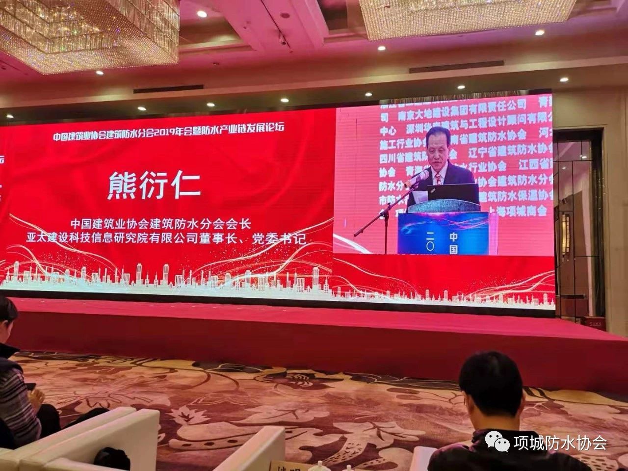 11月15日,中國(guó)建筑業(yè)協(xié)會(huì)建筑防水分會(huì)2019年會(huì)暨防水產(chǎn)業(yè)鏈發(fā)展論壇在上海召開(kāi)。中國(guó)建筑業(yè)協(xié)會(huì)會(huì)長(zhǎng)、原住建部總工程師、辦公廳主任王鐵宏,中國(guó)工程院院士肖緒文,中國(guó)建筑業(yè)協(xié)會(huì)副秘書(shū)長(zhǎng)景萬(wàn),中國(guó)建筑業(yè)協(xié)會(huì)建筑防水分會(huì)會(huì)長(zhǎng)熊衍仁、專家委員會(huì)名譽(yù)主任葉琳昌、專家委員會(huì)主任曲慧、常務(wù)副會(huì)長(zhǎng)兼秘書(shū)長(zhǎng)張可文等領(lǐng)導(dǎo)、專家及全國(guó)各地防水同行、地方防水社團(tuán)組織領(lǐng)導(dǎo)、國(guó)內(nèi)外專家學(xué)者共近300人出席會(huì)議。項(xiàng)城市政協(xié)副主席、防水協(xié)會(huì)會(huì)長(zhǎng)王養(yǎng)嶺率領(lǐng)項(xiàng)城防水代表團(tuán)參加此次大會(huì)。