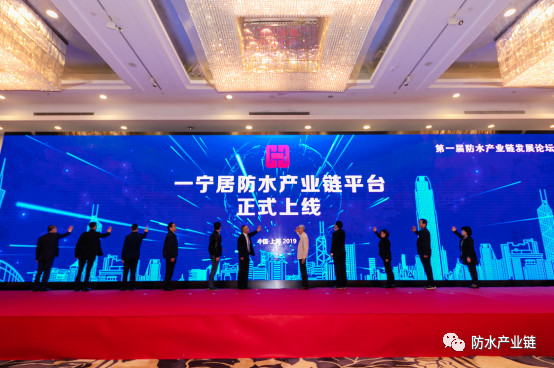 2019年11月15日,由上海一寧居信息科技有限公司承辦的第一屆防水產業鏈發展論壇在上海召開。來自浙江、河北、湖北、四川、青海、遼寧、黑龍江、江西、壽光、上海、重慶、項城、平輿等地方防水或建筑施工的社團組織領導;來自全國各地的防水同行、國內外專家學者共近350人出席了會議。中國建筑業協會會長、原住建部總工程師、辦公廳主任王鐵宏、中國工程院院士肖緒文、中國建筑業協會副秘書長景萬、中國建筑業協會建筑防水分會會長熊衍仁、專家委員會名譽主任葉琳昌、專家委員會主任曲慧、常務副會長兼秘書長張可文,以及河南省駐滬辦副書記許春暉、平輿縣人大常委會主任禹衛東、項城市政協副主席王養嶺、上海市化學建材行業協會秘書長樓明剛、一寧居防水產業鏈平臺創始人倪貴全與大家共同見證了一寧居防水產業鏈平臺上線儀式。