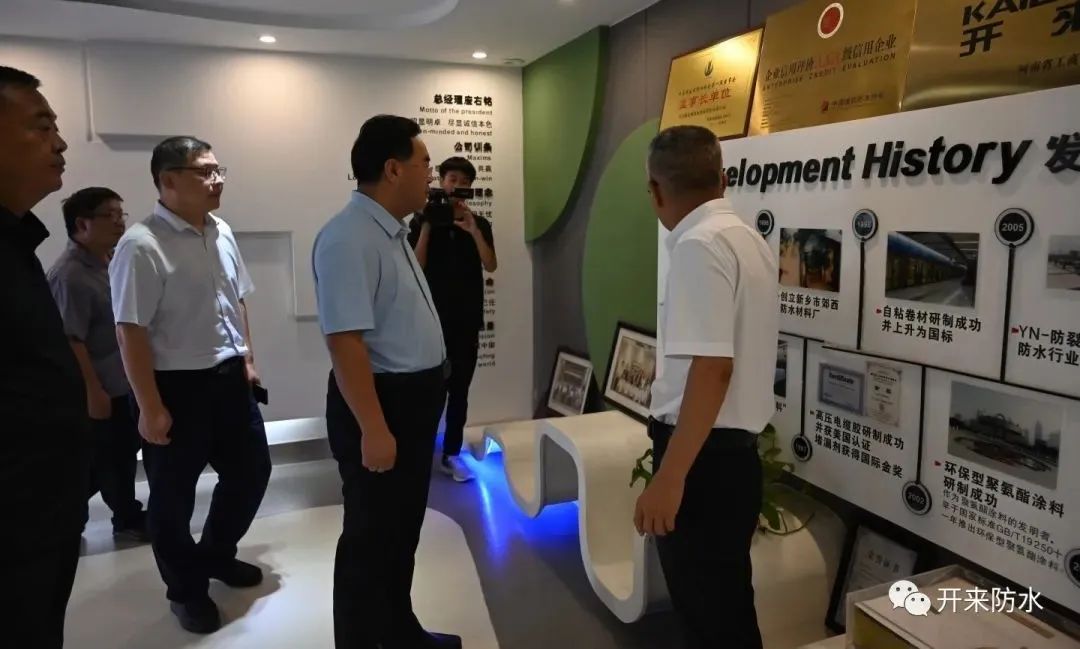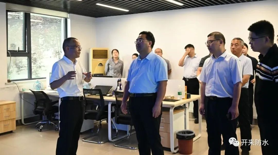 8月8日上午,新鄉(xiāng)縣委書(shū)記祝顯成帶隊(duì)到開(kāi)來(lái)濕克威防水調(diào)研,縣委辦主任、開(kāi)發(fā)區(qū)管委會(huì)主任王明輝,科工局局長(zhǎng)王帥、農(nóng)業(yè)農(nóng)村局局長(zhǎng)張罡、古固寨鎮(zhèn)黨委書(shū)記王宗源、鎮(zhèn)長(zhǎng)張莉等一行陪同。