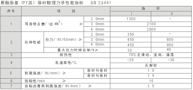 產品按主題材料分為高分子防水卷材(P類)、瀝青基聚酯胎防水卷材(PY類)。