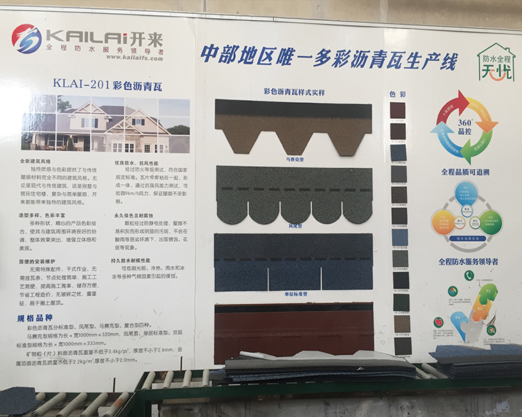 KLAI-201彩色瀝青瓦是以玻璃纖維氈為胎基,經(jīng)浸涂中石化優(yōu)質(zhì)石油瀝青后,一面覆蓋燒結(jié)彩色礦物粒料、另一面撒以隔離材料所制成的瓦狀屋面防水片材。公司擁有中部地區(qū)特有的彩色瀝青瓦生產(chǎn)線,對外提供定制。采用在高溫下陶化而成的彩色燒潔砂,產(chǎn)品采用全背膠生產(chǎn)工藝。彌補了瀝青瓦抗風(fēng)性能差的缺點,造型多樣,色彩豐富。